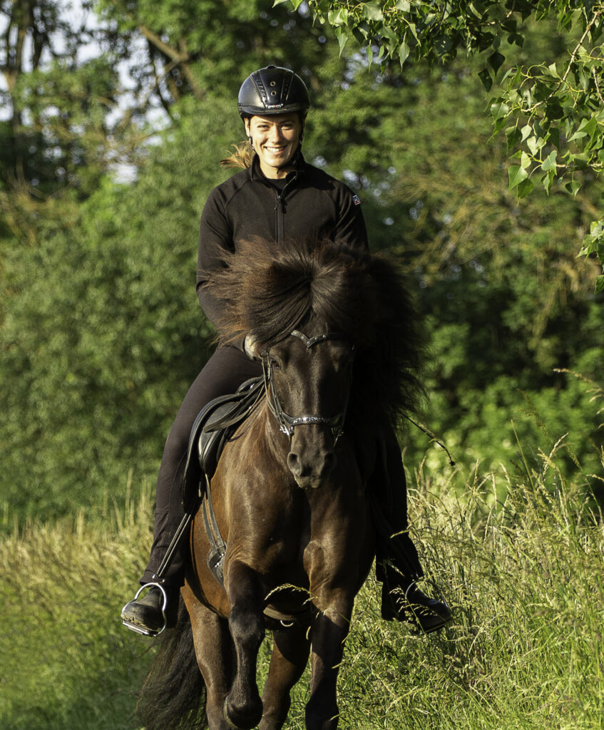 Sie ist im Betrieb mitverantwortlich für die Reitschule, Jungpferdeausbildung/ Beritt, Pferdeversorgung, Betreuung der Reiterferien und Gäste.