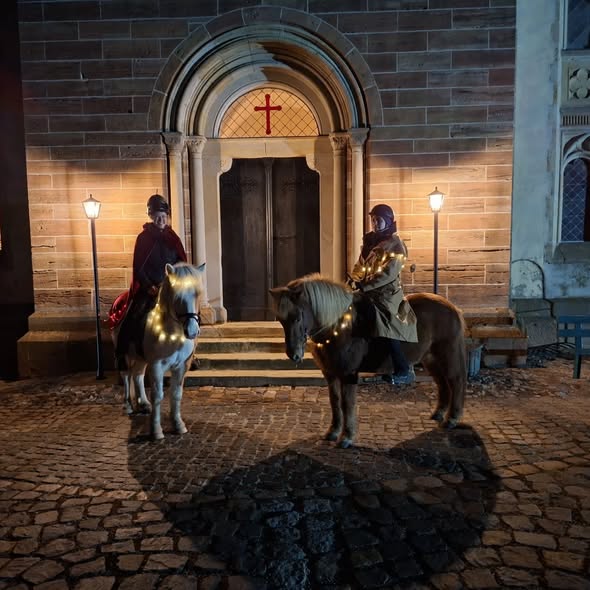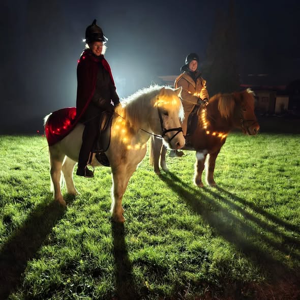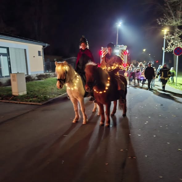 Daher waren 2 Islandpferde aus Illsitz – mittlerweile zum 3. Mal – dabei und führten die große Menschentraube mit Feuerwehrbegleitung durch den Ort – mutig, nervenstark und geduldig, sodass alle Kinderaugen leuchteten.![]()